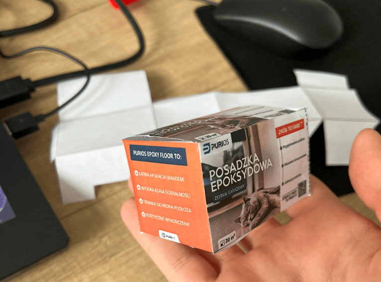 Rezultatem całego procesu jest kompletny, profesjonalny produkt – zestaw Purios Epoxy Floor w funkcjonalnym i atrakcyjnym opakowaniu. Dzięki opracowaniu od podstaw zarówno koncepcji wizualnej, ergonomii kartonu, jak i elementów wspierających (instrukcja, rendery 3D, materiały marketingowe), udało się stworzyć rozwiązanie spójne, intuicyjne i dopasowane do potrzeb użytkowników. Opakowanie wyróżnia się na tle konkurencji w branży budowlanej, ułatwia samodzielne wykonanie posadzki w formule DIY i jednocześnie wzmacnia profesjonalny wizerunek marki Purios.