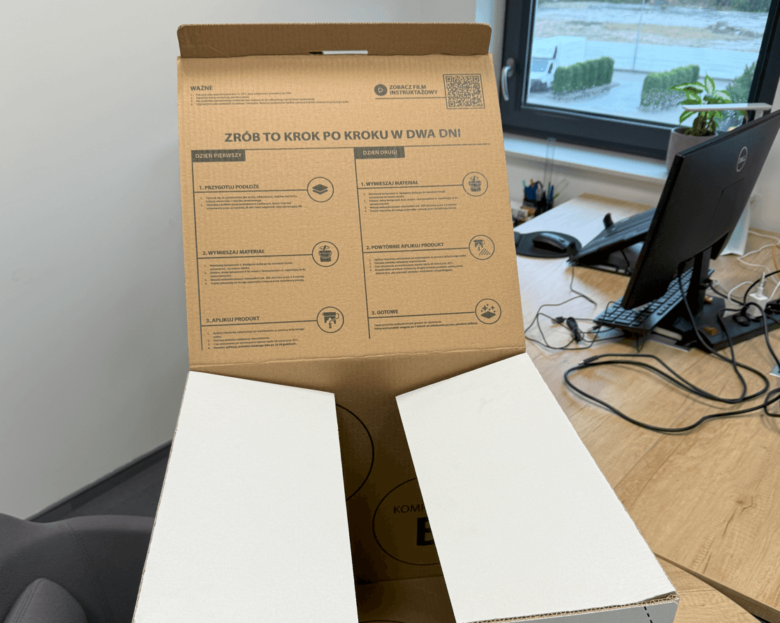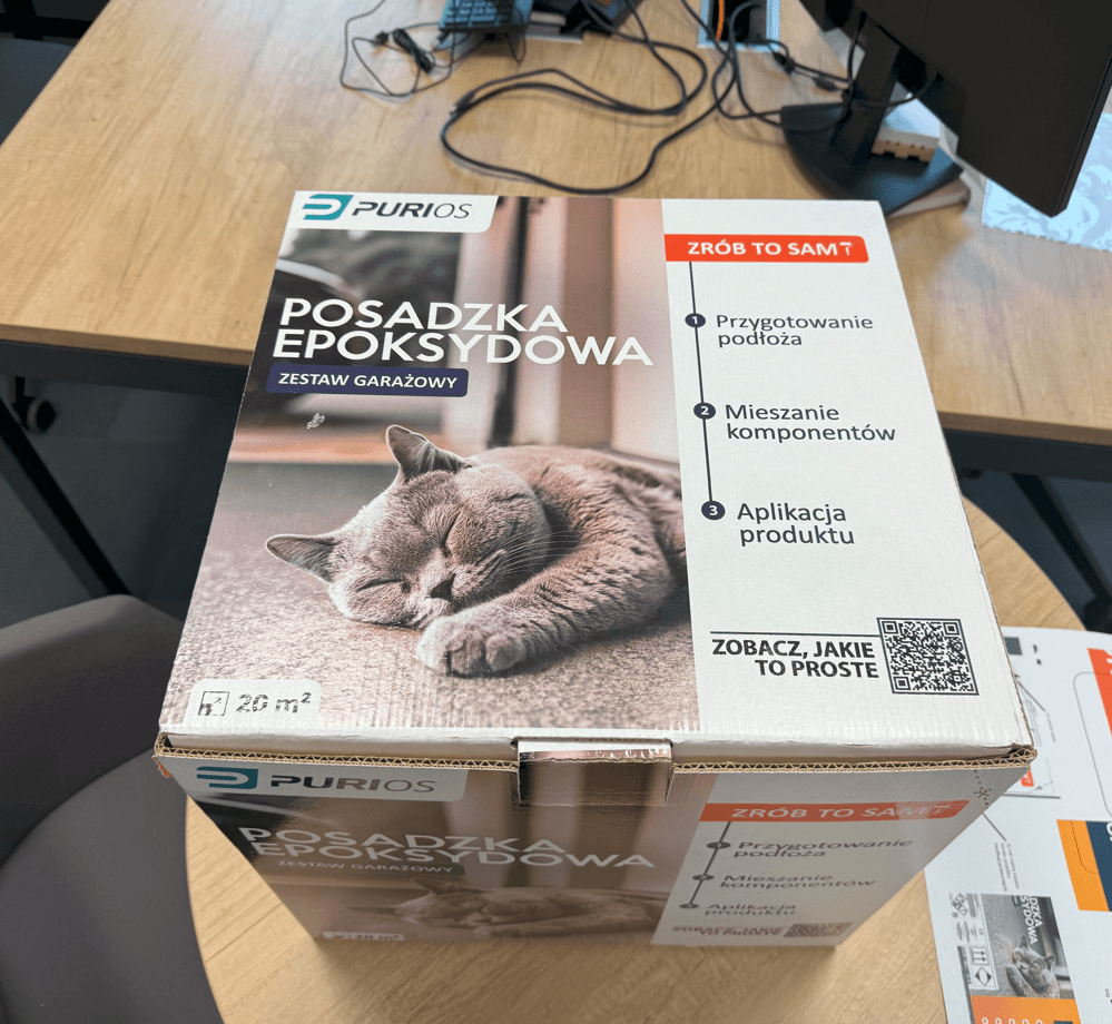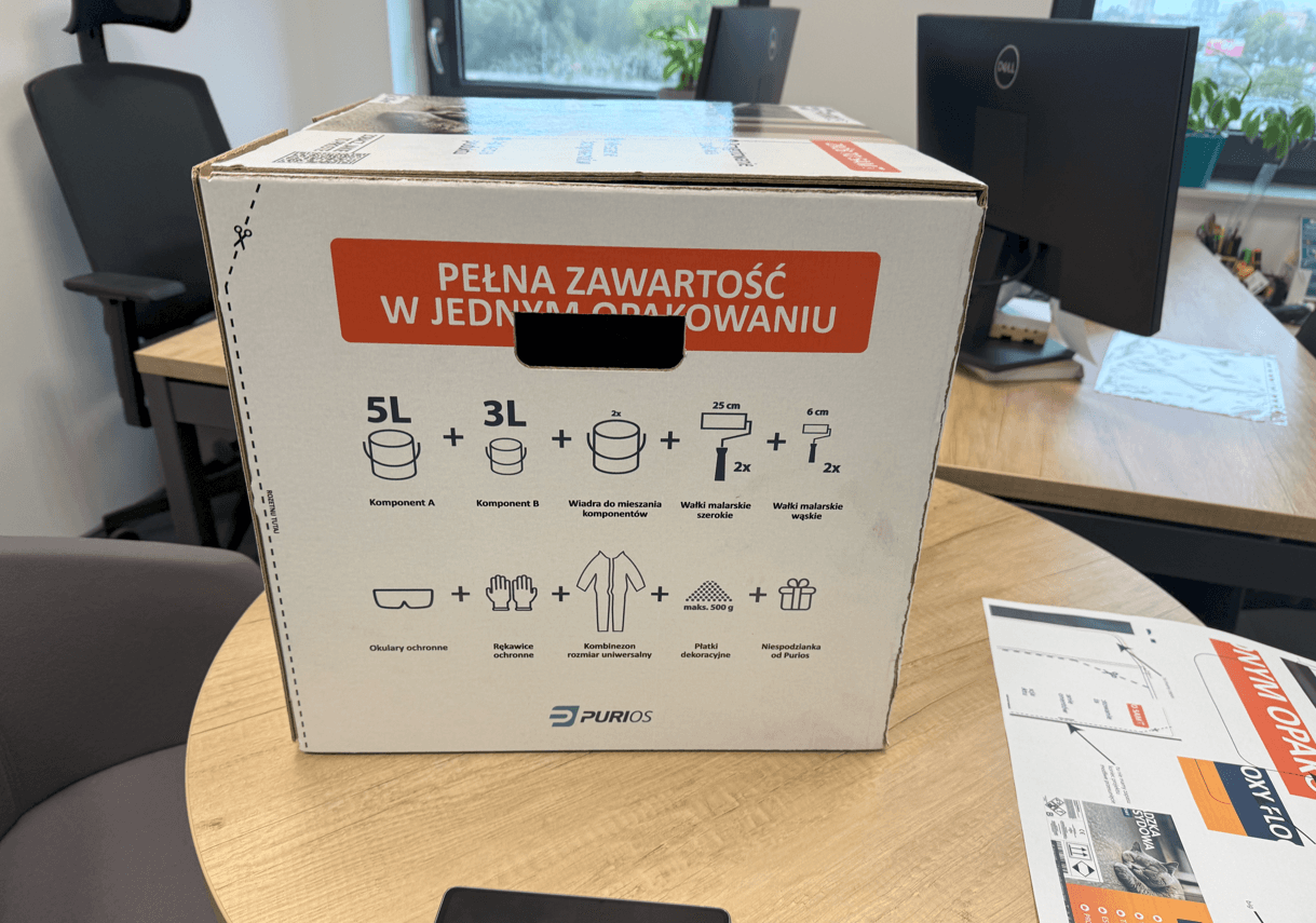 Rezultatem całego procesu jest kompletny, profesjonalny produkt – zestaw Purios Epoxy Floor w funkcjonalnym i atrakcyjnym opakowaniu.