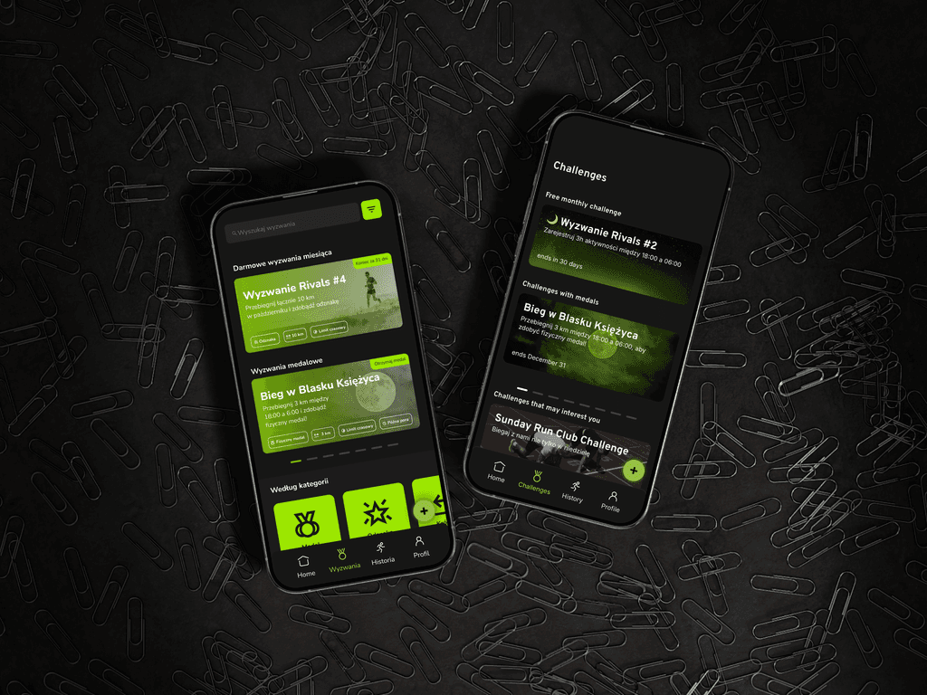 Przeprojektowałem ekran wyzwań, skupiając się na poprawie użyteczności i estetyki. Wprowadziłem czytelne kategorie, filtry oraz intuicyjny układ, co ułatwiło użytkownikom nawigację i zwiększyło zaangażowanie. Całość została przeprojektowana tak by była spójna z identyfikacją Rivals ale oferując zarówno atrakcyjny i intuicyjny design