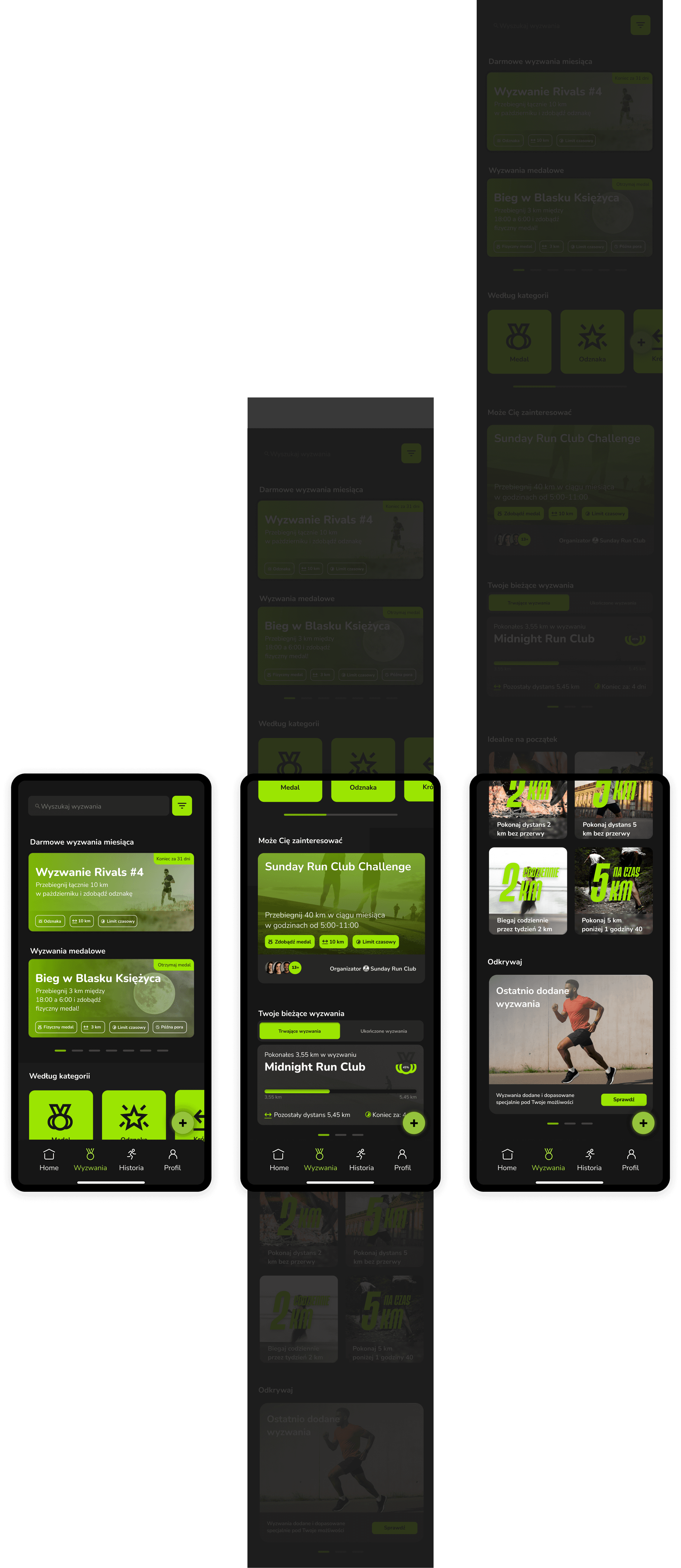 Kafelki z biegami zawierały ograniczone informacje, przez co użytkownik musiał wchodzić w każde wyzwanie, żeby poznać szczegóły.